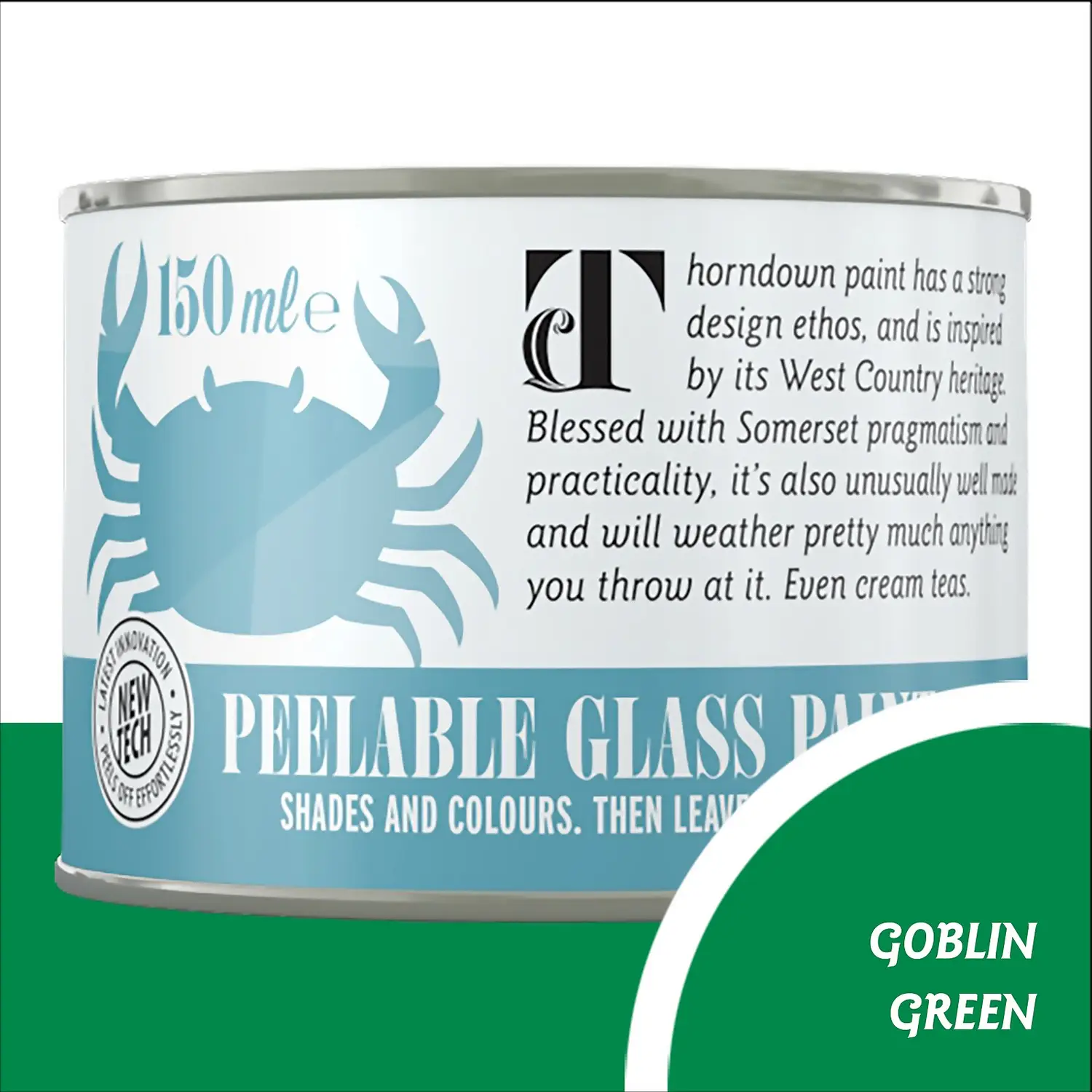 Goblin Green is a lovely translucent green glass paint. Thorndown’s revolutionary water-based Peelable Glass Paint is made from a resin using 100% recycled plastics & old coatings can be returned to us for recycling! Whether you want practical shading or your own stained glass, we have a gorgeous range of opaque and translucent colours.